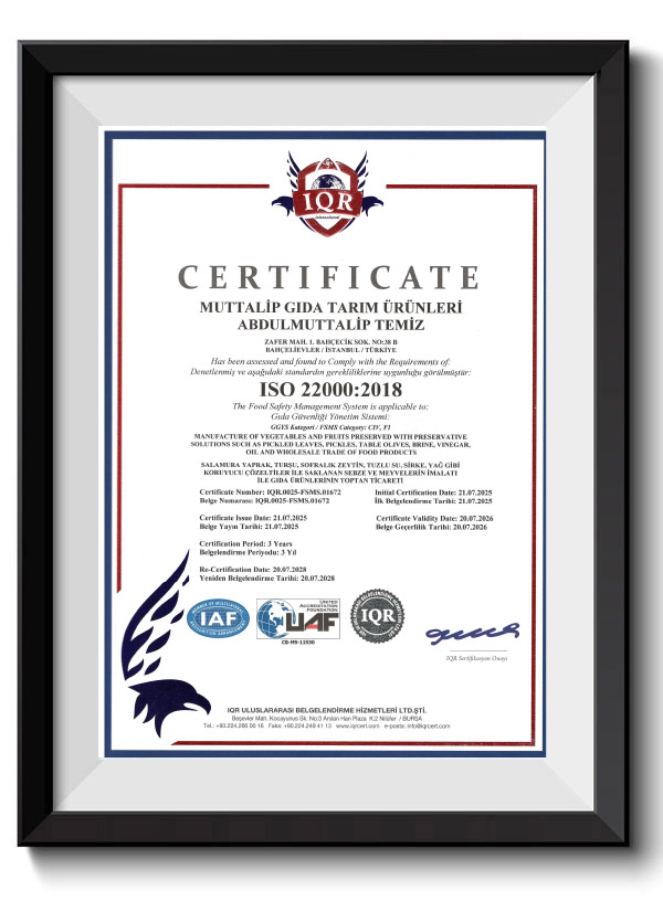 Bu sebeple Tokat'ın Erbaa ilçesinde ve çevre yöresinde uzun yıllardır süre gelmekte olan kaliteli ve birinci sınıf sarma yaprağı üretimini bir adım daha ileri taşıyarak TÜRK GIDA KODEKSİ sınırları içinde TARIM ve GIDA tüzüğüne uygun olarak siz tüketicilere birinci sınıf TOKAT SALAMURA BAĞ YAPRAĞINI ulaştırma kararı aldık.